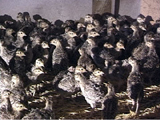in fensterlose Hallen. Später wird den Jungtieren der Schnabel