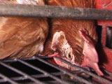 Durch dieses enge Beisammensein der Hühner kommt es zu Aggressionen,